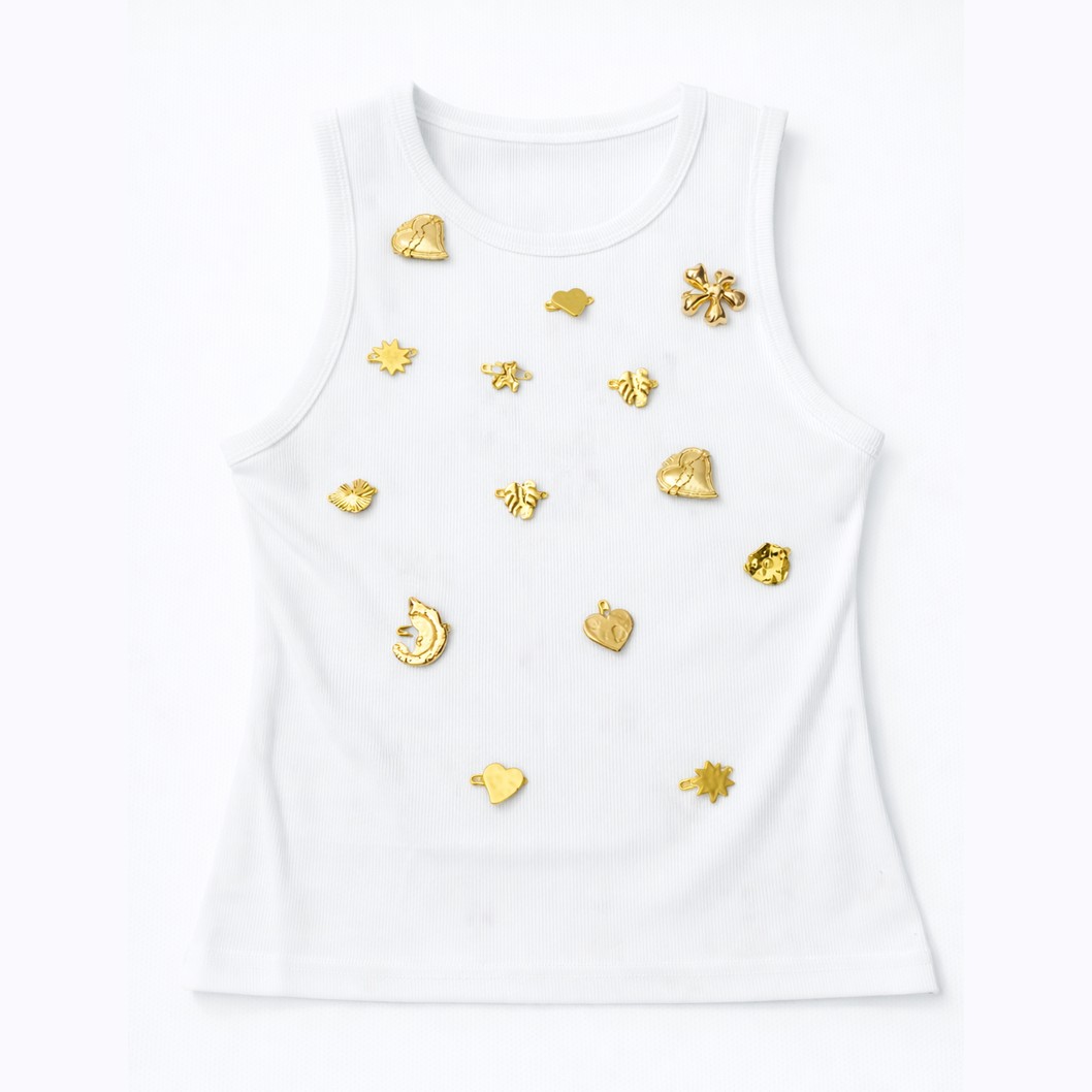 T-SHIRT COM APLICAÇÕES DOURADAS- TL-12SS261555